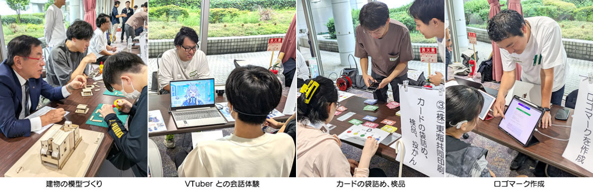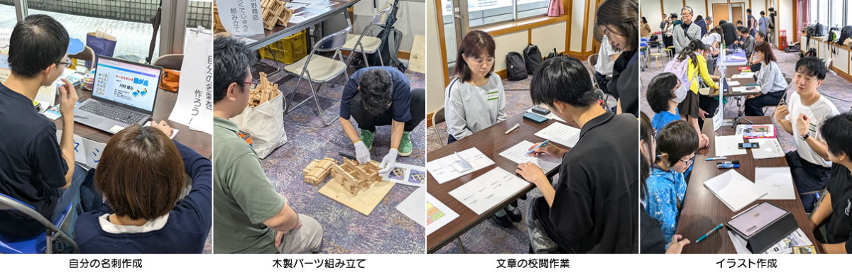 午前の仕事体験では会員企業12社がブースを出展。そのうち11社が初めての参加で、活動に広がりが見られました。ブースには、手先の器用さが求められる作業からAIを用いた機器類の操作までさまざまに準備され、体験者は自分の可能性を探り、企業側は自社で何ができるか、課題は何かを見つめ直す機会となりました。